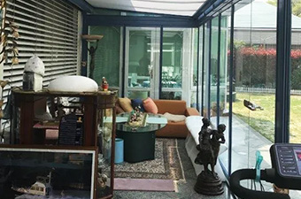 ソファを置いてゆったりとしたリラックススペースを確保したグラスハウス。小さなスペースでも設置が可能です。