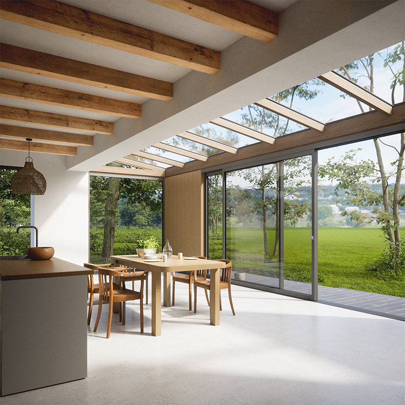 グラスハウス®の側面部分を構成しているガラスパネルの「スライドドア」「スライド&ターンドア」は単独商品として展開しています。